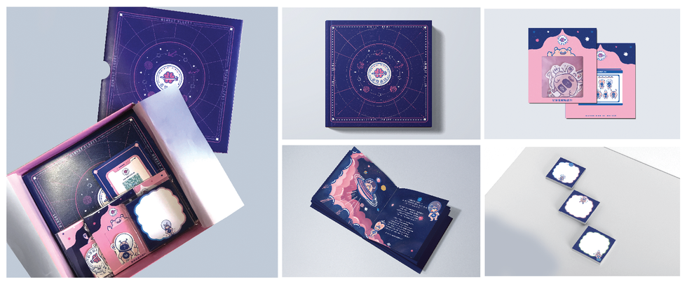“Memory Planet” is a memory journal. The user can through this journal, postcard, stickers and other related designs choose their own planet monsters. Then, they can use my mind maps design -‘追憶腦圖’ to collect their memory materials and build up their own unique 5 differences of target’ s incident of memory.